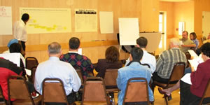In some cases, it was essential to meet community members in church groups, English as a Second Language (ESL) classes, or at parent-teacher meetings due to a variety of factors such as limited time, lack of child care, or a distrust of government bodies. Specific outreach was designed to reach the majority monolingual Spanish-speaking Cherryland community. A meeting in February 2008, led by Congregations Organizing for Renewal, was conducted entirely in Spanish; more than 150 community members participated in a process similar to the task force meetings, out of which came a few additional projects and strategies that were either integrated with or added to the list of projects to be voted on at the April 5th community charrette.
