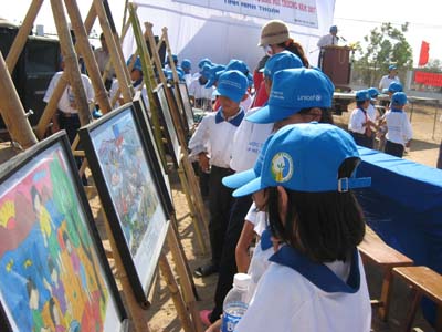 • UNICEF then discussed its own use of creative communication to foster child participation: the pilot initiative Creative Connections. Focusing on 4 key child development issues (education, water and sanitation, protection, and injury prevention) in schools and communities, the Creative Connections process and outputs are designed to build authentic child-based understanding of behaviour change communication (BCC) messages. Specifically, UNICEF is holding after-school workshops that are facilitated by trained teachers in 3 pilot secondary schools in Ninh Thuan. They are designed so that students generate the ideas, own these ideas, and determine how to present them using creativity, fun, and laughter. The final products can be anything from maps, drawings, sculptures, role-plays, music, photos, quizzes, to organising a contest or campaign. A school festival is expected to be held in December 2009.