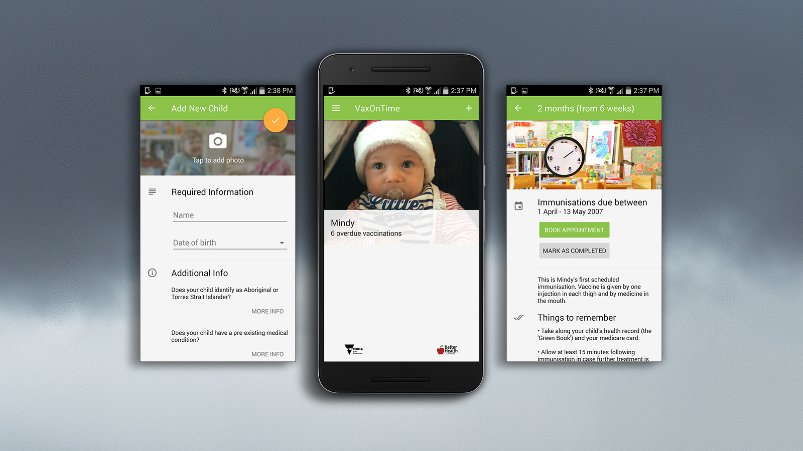 This study evaluates 2 mobile-phone-based interventions aimed at increasing parents' knowledge of the measles-mumps-rubella (MMR) vaccination (through elements of gamification) and their psychological empowerment (through the use of narratives), respectively. The 2 interventions were part of a randomised controlled trial (RCT). In particular, the researchers were interested in capturing participants' opinion regarding a number of qualities of the app, such as usability and usefulness, and in acquiring information on their broader experience with the tool. The results of these studies are interpreted in light of the quantitative results of the RCT, and practical implications for the design of future mobile-phone-based immunisation interventions are discussed.