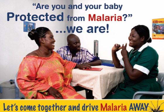 Designed for mothers, fathers, and communities, these posters and brochures encourage the use of insecticide-treated bed nets, provide information on Artesunate-Amodiaquine as the drug of choice to treat malaria, and promote couples (primarily females) to seek intermittent preventive treatment (IPT) during pregnancy. These malaria prevention and control materials were produced as part of the Ghana Sustainable Change Project, implemented by the United States Agency for International Development (USAID) as part of the President's Malaria Initiative (PMI), in collaboration with the Academy for Educational Development (AED, now FHI360), from 2004 to 2009. The project worked to improve the health of Ghanaians through the use of communication and social marketing initiatives, including developing and implementing behaviour change communication (BCC) activities in malaria as well as in other high priority public health sectors, with an emphasis on interpersonal communication at the district level and below.