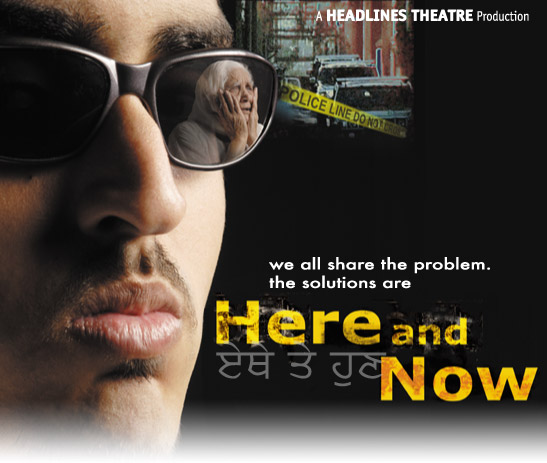 Here and Now was a communication-based violence prevention project developed in 2005 by Headlines Theatre in collaboration with members of the Indo-Canadian community in the Lower Mainland of British Columbia (Victoria, Canada). The project used the methodology of Forum Theatre, shared through live productions and an interactive webcast, to highlight and draw on the experiences of immigrant communities who are struggling with issues of integration, multiculturalism, and conflict. The project used "primal language" to tell collective stories about the community's struggle with violence in an effort to engender community dialogue and action. The webcast element reflected the goal of functioning as a vehicle for other communities, worldwide, to investigate the roots of (and solutions to) violence in their own contexts.