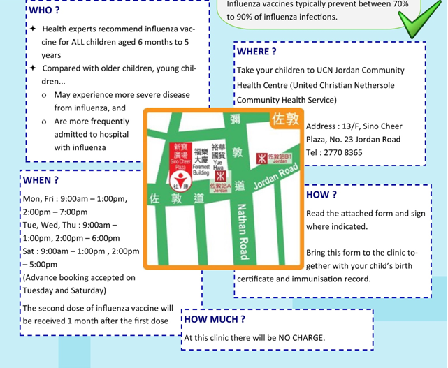 Studies show that most Hong Kong parents are not aware of the Government's recommendation that young children should receive influenza vaccination, emphasising the importance of making this information concise and easily accessible to parents. In light of the low uptake rate of this safe and effective vaccine, the disease burden in Hong Kong children, and the lack of previous local studies, the researchers conducted a randomised controlled trial (RCT) to determine whether a communication-centred intervention package could increase influenza vaccine uptake in Hong Kong children aged from 6 to 24 months.