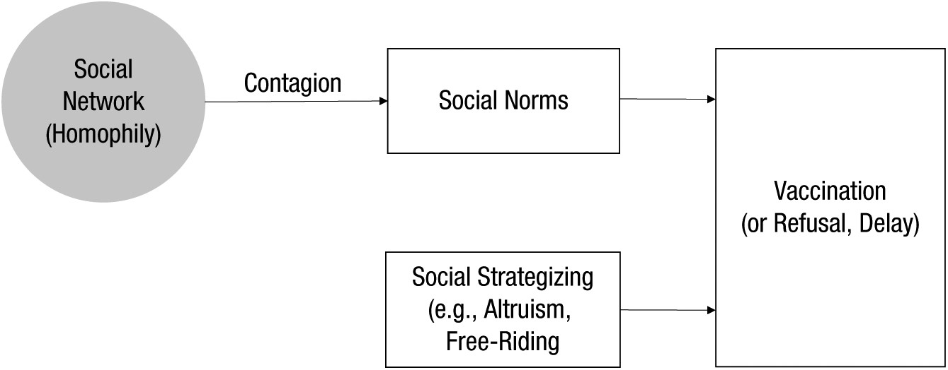 - Social networks, which "play an important role in vaccination attitudes and behavior. Individuals may confer with family members, friends, and members of their social network about vaccination attitudes, making vaccination decisions a part of their social identity."